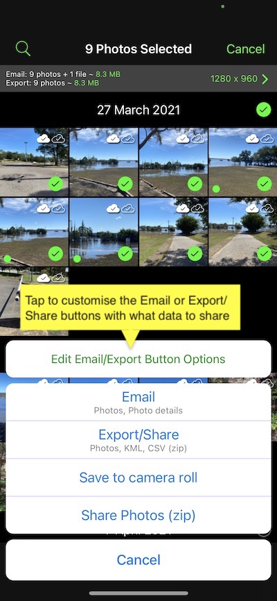 - Map links (Can be emailed with photos to third-party email apps)