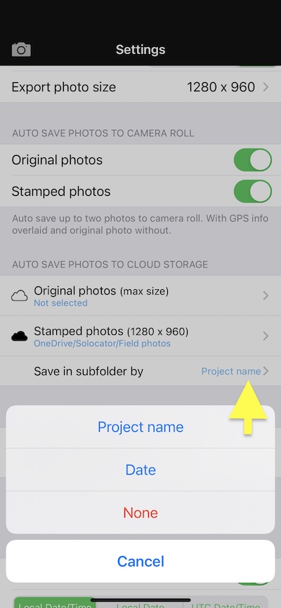 Subfolders: Photos can either be saved directly into the selected folder or can be saved into subfolders. Subfolders are auto-created based on the “Project Name” field used on the photos or “Date” the photo was taken. See screenshot 16.