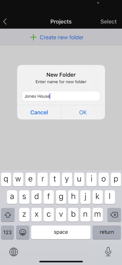 - Create a new folder – To create a new folder, tap the “+ Create new folder” button and type in the name in the pop-up field. The new folder will be created in the drive or folder that is shown just above the under the “+ Create new folder” button.