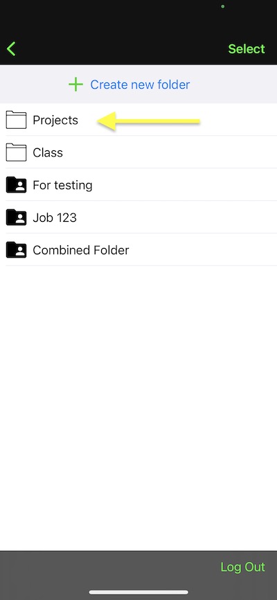 - Select Destination Folder – After signing in, select either an existing folder, a shared folder or create a new folder where you wish your Solocator photos to be saved. To select a folder, tap onto the folder after the screen has refreshed (the spinning wheel has finished) and tap the “Select” button (top right). The file path to the folder has now been selected.
