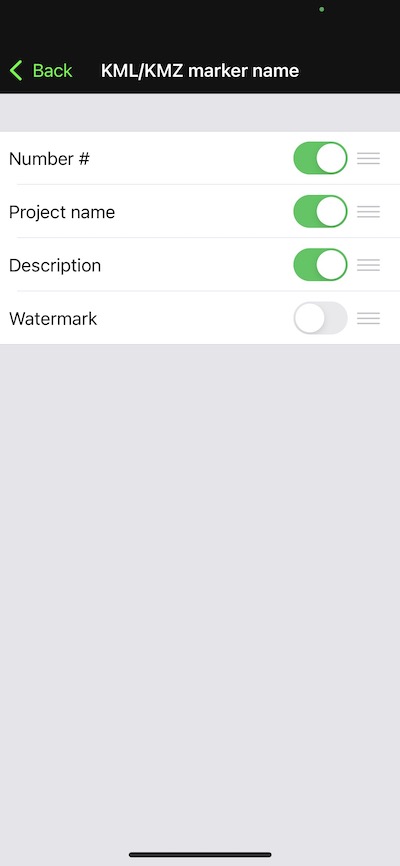 Email or exporting KML/KMZ files: Before emailing or exporting KML/KMZ files, you can further customise the Placemark names for photo locations using “Project Name, “Description”, and “Watermark” fields plus the addition of a photo “Number#”. Custom place mark names are handy to recognise photo location when opening KML or KMZ files in GIS software such as Google Earth.